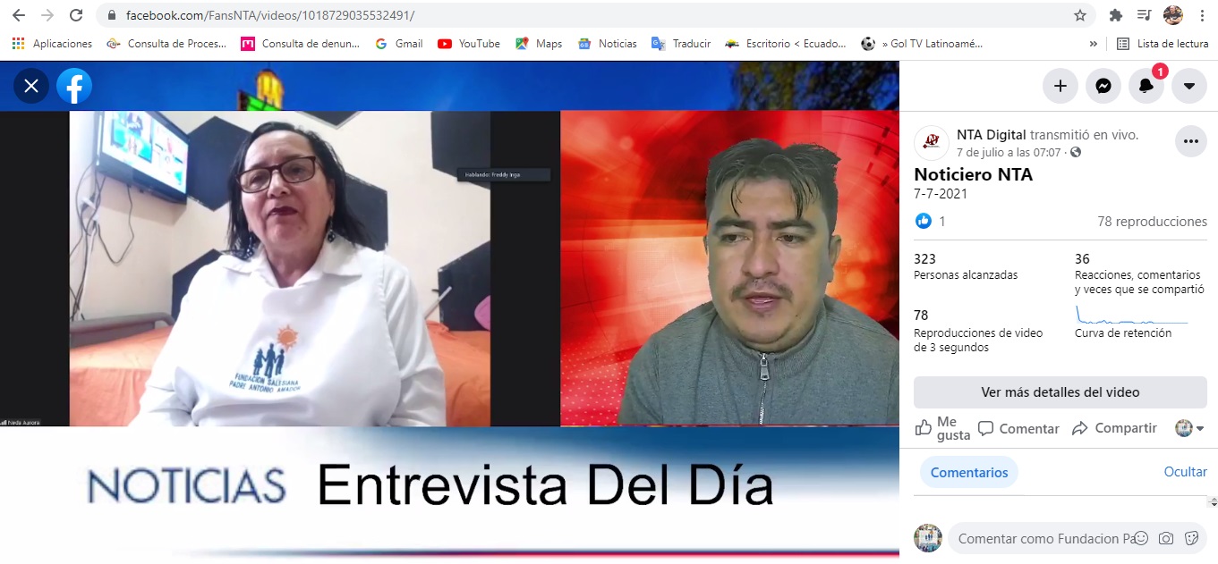 Nuestra directora, licenciada Neda Ycaza de Guzmán, en entrevista con el periodista Freddy Inga para NTA Digital de la ciudad de Loja, el 7 de julio del 2021. Muchas gracias por darnos la oportunidad de difundir nuestras actividades.
