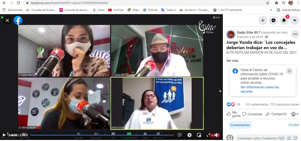 Nuestra directora, Licenciada Neda Ycaza de Guzmán, fue invitada el 9 de julio del 2021 a una entrevista en Élite Noticias por Radio Elite 99.7. ¡Gracias por ayudarnos!