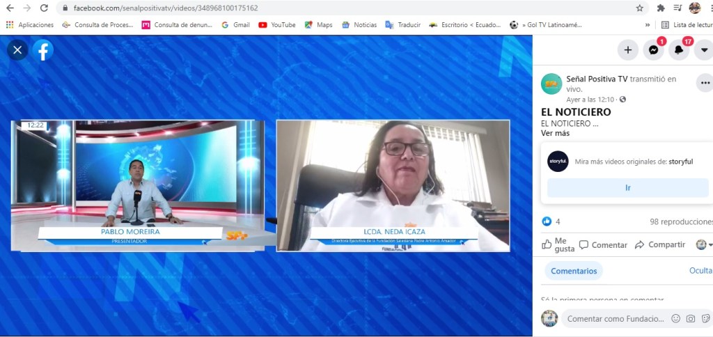 Muy agradecidos con el periodista Pablo Moreira y El Noticiero de Señal Positiva TV por la entrevista que le brindaron el día de ayer viernes 23 de julio a nuestra directora, Lcda. Neda Ycaza de Guzmán.
