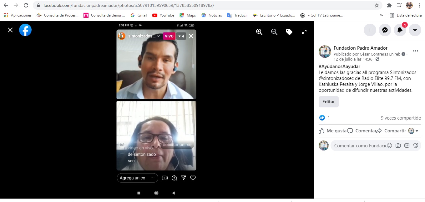 Le damos las gracias al programa Sintonizados @sintonizadosec de Radio Élite 99.7 FM, con Kathiuska Peralta y Jorge Villao, por la oportunidad de difundir nuestras actividades. Transmisión realizada el 12 de julio del 2021, por la cuenta de Instagram de @sintonizadosec.